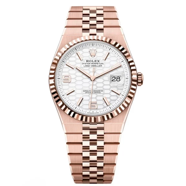 Rolex Land-Dweller 127335-0001 White Honeycomb Dial Everose Jubilee Bracelet 40mm