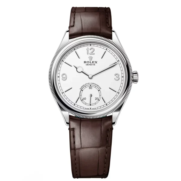 Rolex 1908 White Gold White Dial Brown Alligator Strap – 52509-0006