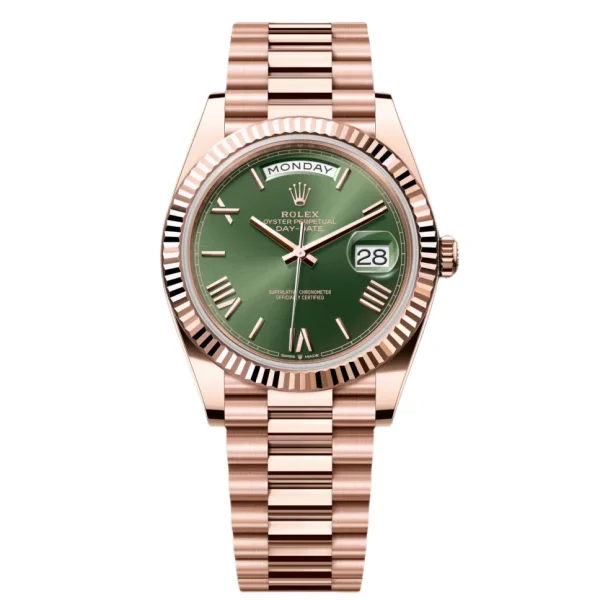 Rolex Day-Date “President” 40mm Everose Gold Olive Green Roman Dial – 228235