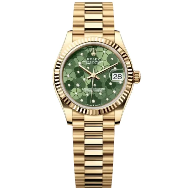 Rolex Datejust m278278-0046 Olive Green Floral Motif 31mm President Bracelet Watch