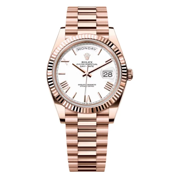 Rolex Day-Date “President” 40mm Everose Gold White Roman Dial – 228235