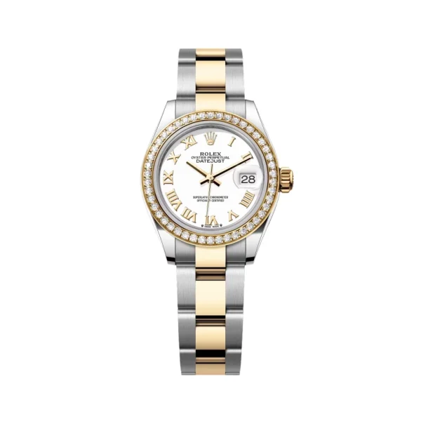 Rolex Lady-Datejust 28mm 279383RBR White Roman Dial Yellow Rolesor Oyster Bracelet