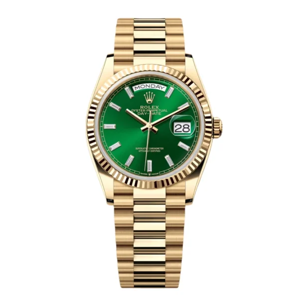 Rolex Day-Date 128238-0130 Green Dial Yellow Gold Bracelet 36mm
