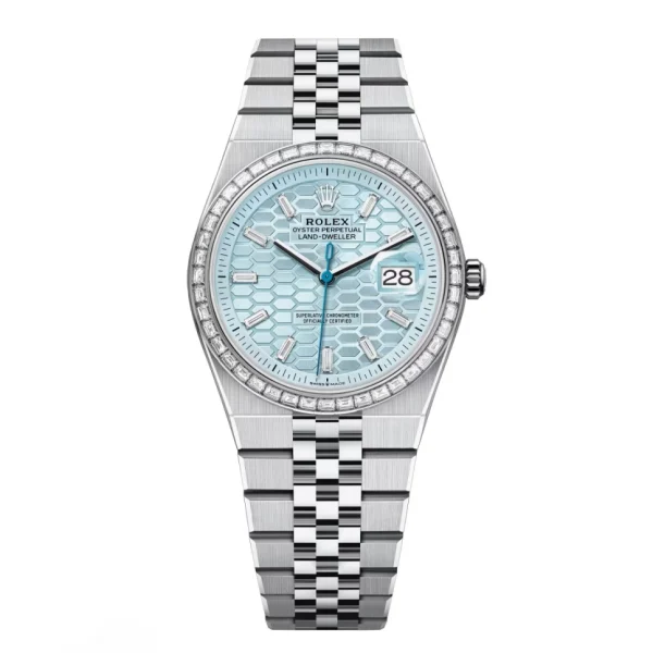 Rolex Land-Dweller 127286TBR-0001 Blue Honeycomb Dial Diamond Platinum Jubilee Bracelet 36mm