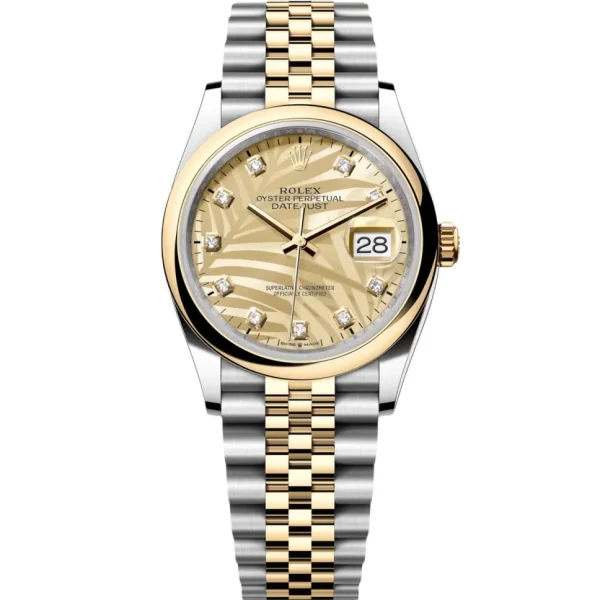 Rolex Datejust 36mm 126203 Golden Palm Dial Domed Bezel Oyster Bracelet