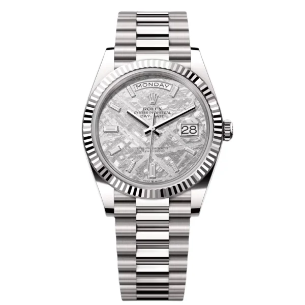 Rolex Day-Date “President” 40mm White Gold Meteorite Diamond Baguette Dial – 228239