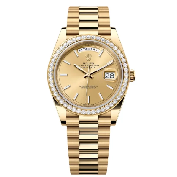 Rolex Day-Date 40mm Champaign Dial and Diamond Bezel Yellow Gold President Bracelet 228348RBR-0008