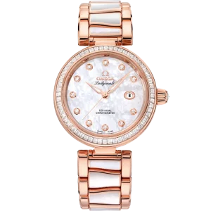 Omega De Ville Ladymatic 34mm White Dial with Diamonds Stainless Steel Sedna? 18k Rose Gold Strap 425.27.34.20.55.004
