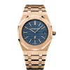 Dial Blue dial with “Grande Tapisserie” pattern, rose gold applied hour-markers and Royal Oak hands with luminescent coating