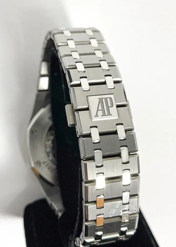 Dial | Rhodium-toned dial with “Grande Tapisserie” pattern, white gold applied hour-markers and Royal Oak hands with luminescent coating |