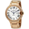 18kt rose gold case with a 18kt rose gold bracelet. Fixed 18kt rose gold bezel set with diamonds. Silver opaline dial with blued-steel sword-shaped hands and Roman numeral hour markers. Minute markers around an inner ring.