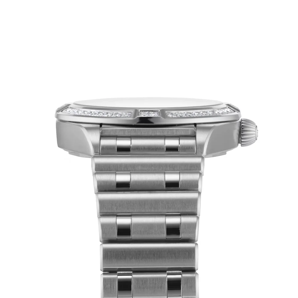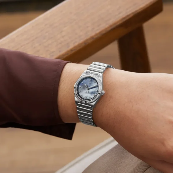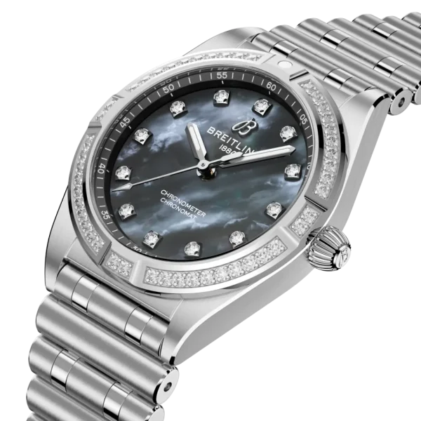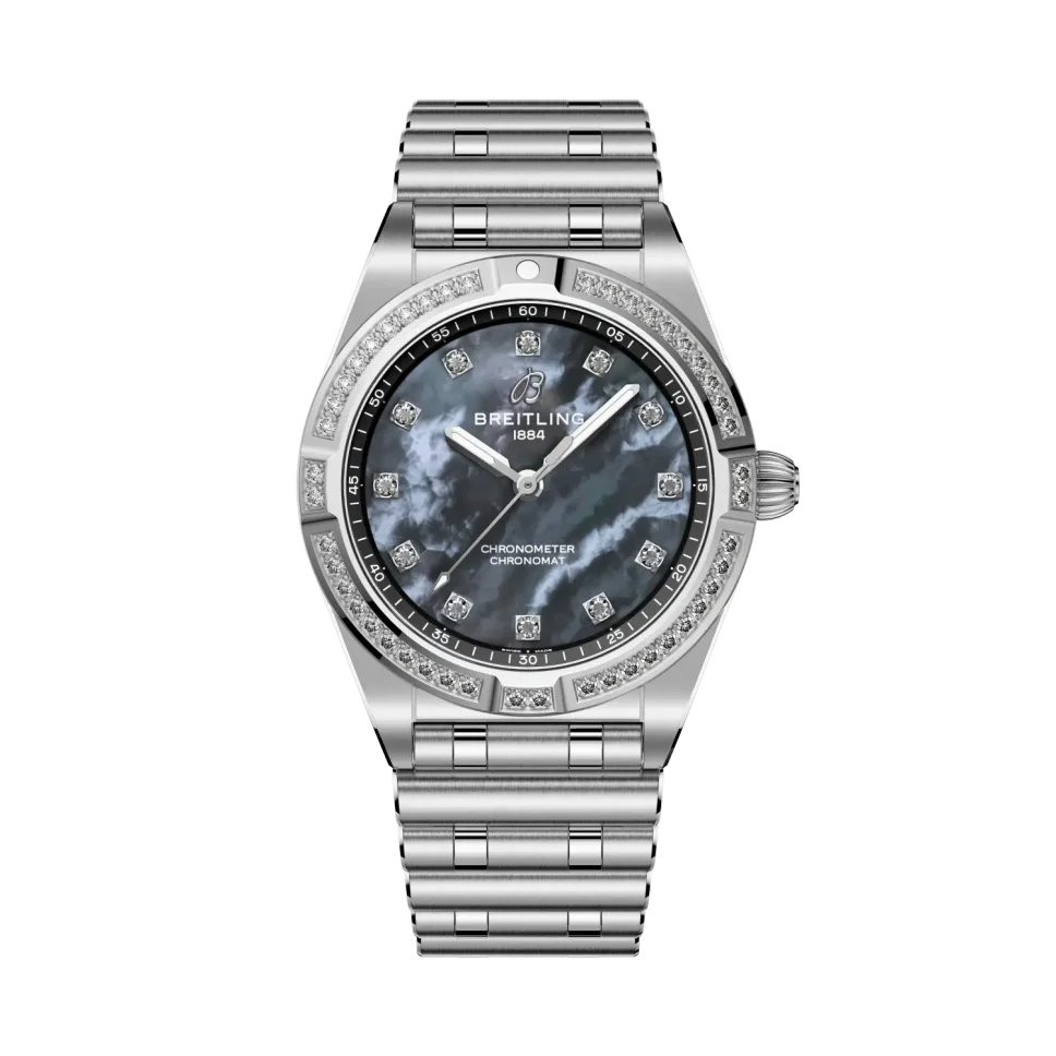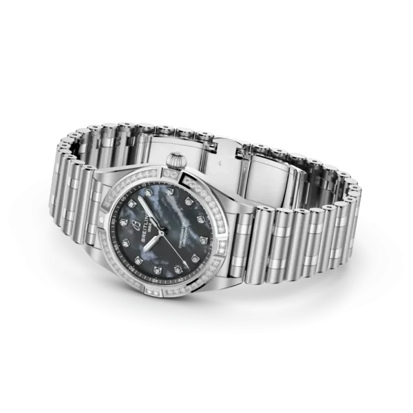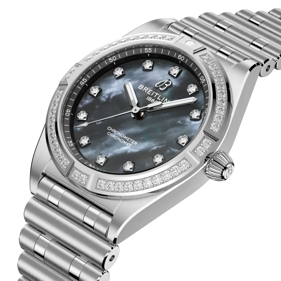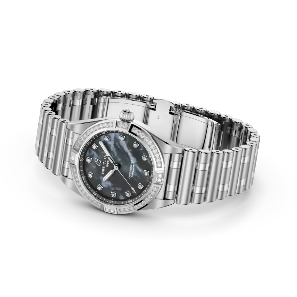 On trend, yet timeless, the petite Chronomat 28 is the versatile sports chic watch for any occasion. These showstoppers have so much more to offer than just their trim new sizes. Mother-of-pearl in various shades and traceable lab-grown diamonds combine with subtle refinements to give the timepieces a jewelry-like appeal. Choose your case and Rouleaux bracelet style: from straight-up stainless steel to mixed-metal duotone—all with a comfortable butterfly folding clasp. The Chronomat 28 is powered by the Breitling Caliber 72, a COSC-certified SuperQuartz™ chronometer.