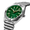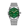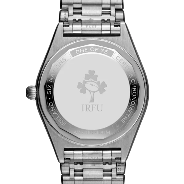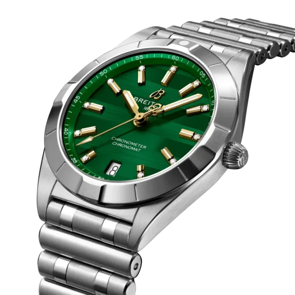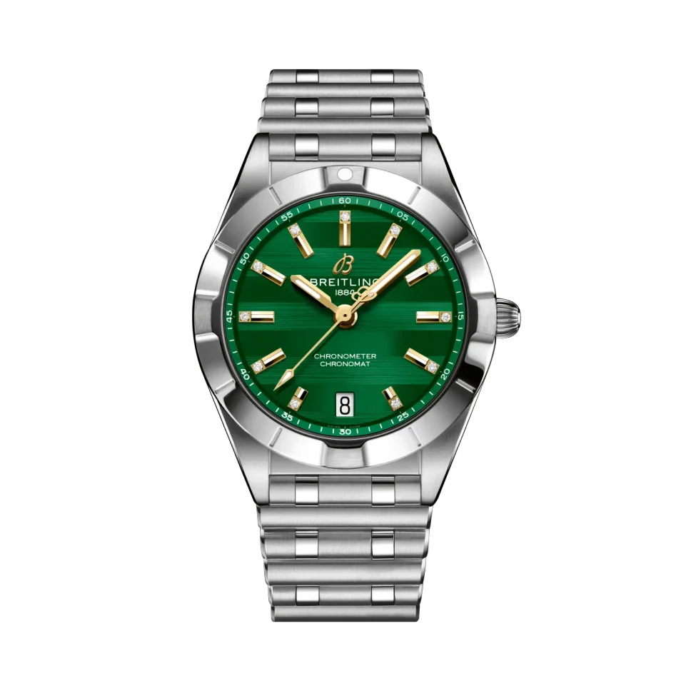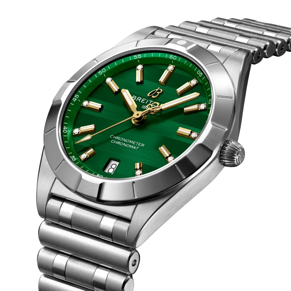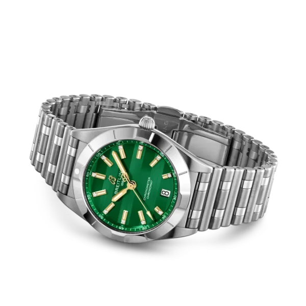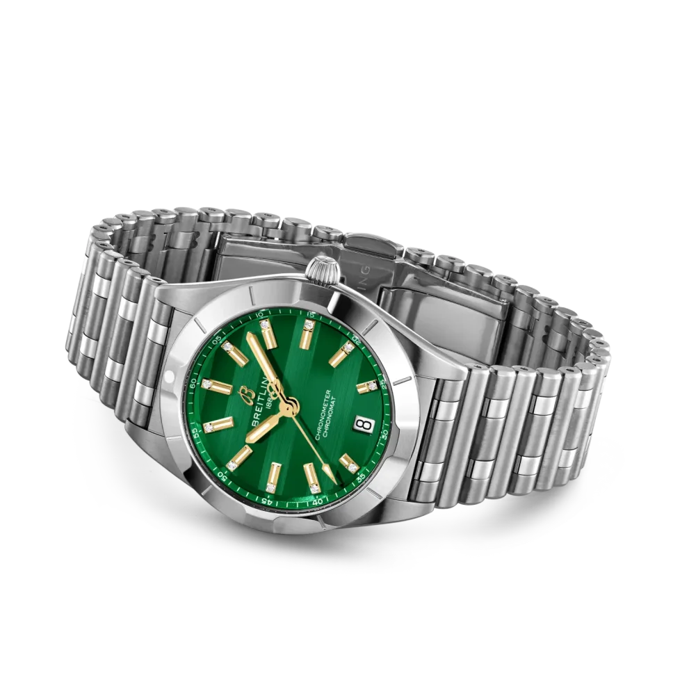 The Breitling Chronomat 32 Six Nations Ireland is a sophisticated timepiece that blends contemporary precision with timeless elegance. With its compact 32 mm stainless steel case and polished metal bracelet, this watch offers a sleek profile ideal for both casual and formal wear. Powering the Chronomat 32 is the Breitling Caliber 77, a COSC-certified SuperQuartz™ movement known for its remarkable accuracy—ten times more precise than standard quartz. The thermocompensated electronic movement also features an end-of-life (EOL) indicator and a practical date aperture. The watch’s durability is reinforced with a screwed-in caseback, 100 m water resistance, and a cambered sapphire crystal glareproofed on both sides. Light on the wrist but rich in craftsmanship, it’s a reliable and stylish choice for everyday luxury.