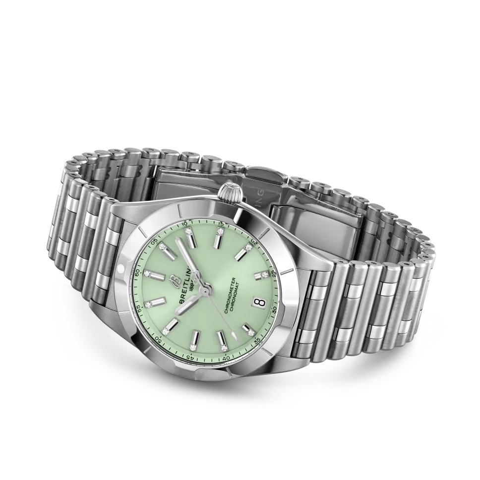 Featuring an array of vibrant dials, straps, and bracelets, all timepieces within the range are certified chronometers recognised by the COSC. This Chronomat Automatic 32 is characterised by the iconic Rouleaux bracelet with its butterfly clasp.