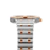 - 32mm stainless steel and 18K red gold case with the iconic Rouleaux bracelet