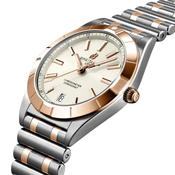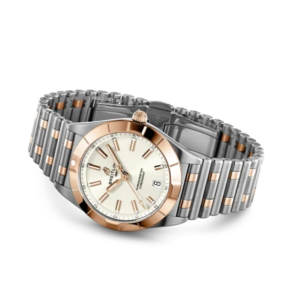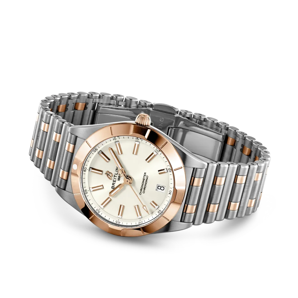 This 32mm Chronomat model showcases a cool stainless steel and luxurious 18K red gold case presented on a co-ordinating two-tone bracelet.
