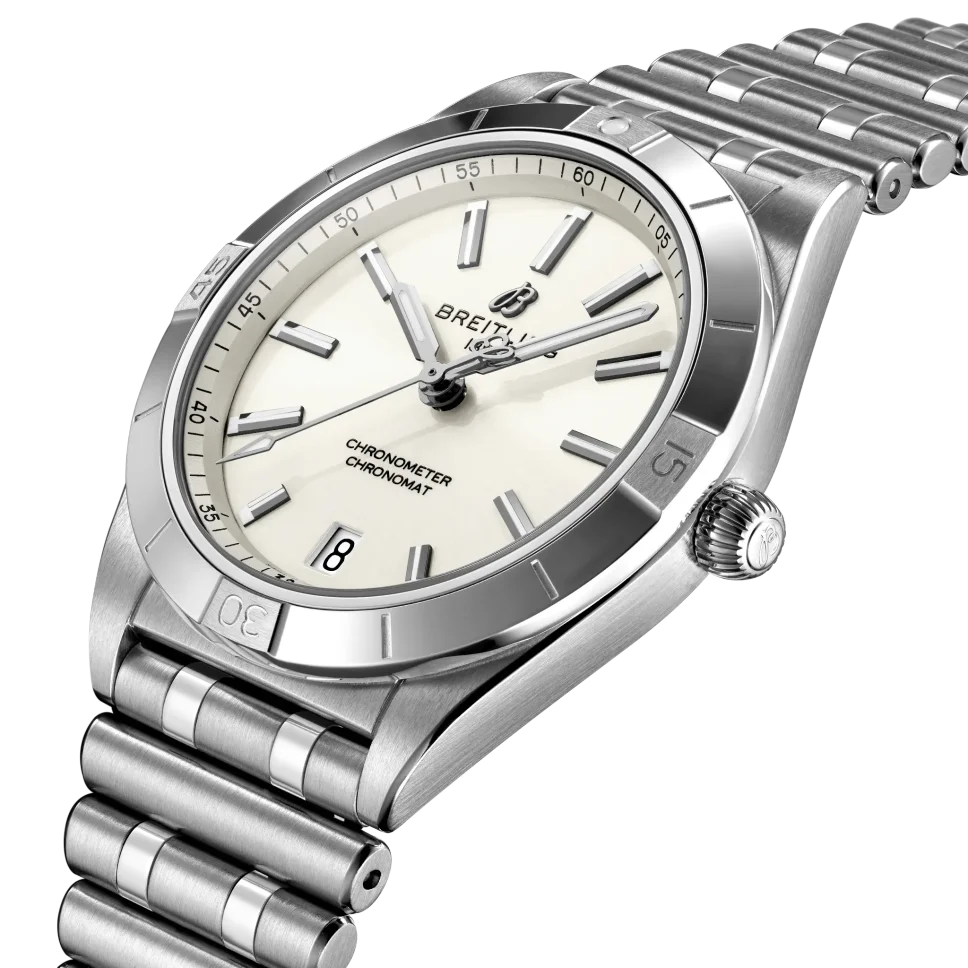 Featuring an array of vibrant dials, straps, and bracelets, all timepieces within the range are certified chronometers recognised by the COSC. This Chronomat Automatic 36 is characterised by the iconic Rouleaux bracelet with its butterfly clasp.