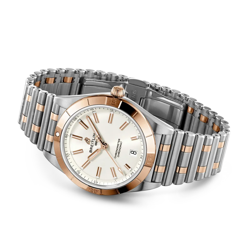 Featuring an array of vibrant dials, straps, and bracelets, all timepieces within the range are certified chronometers recognised by the COSC. This Chronomat Automatic 36 is characterised by the iconic Rouleaux bracelet with its butterfly clasp.