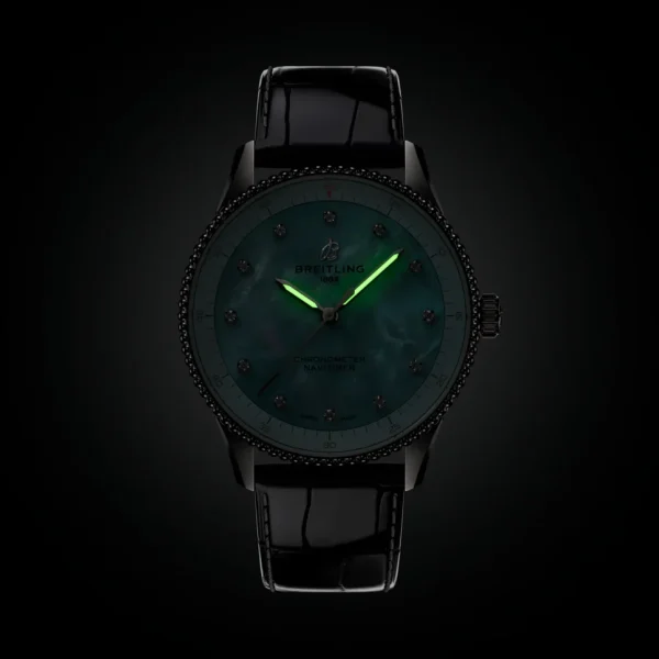 This timepiece is powered by the Breitling 77 calibre Thermocompensated SuperQaurtz movement and offers water resistance to 5 bar (50 metres).