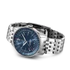 - 41mm case with a blue dial and a 7 link stainless steel bracelet
