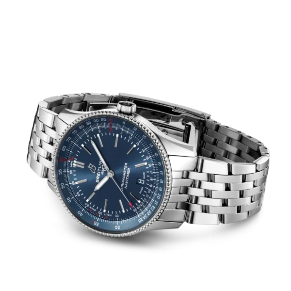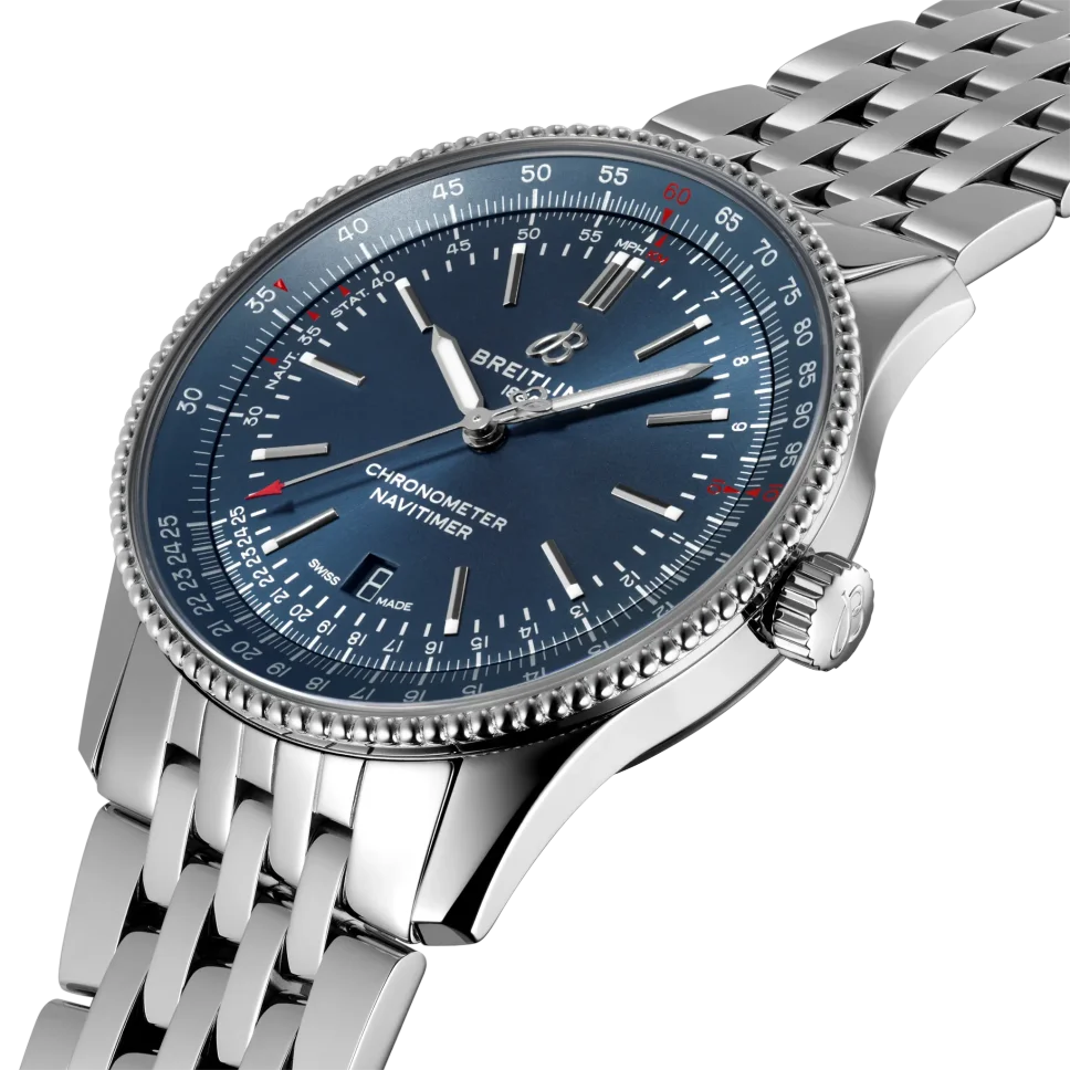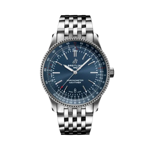 The Navitimer 41mm timepiece features a timeless Breitling design, with a blue dial.