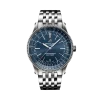 A bidirectional beaded bezel frames the robust 35mm stainless steel case while the blue dial is complimented with stainless steel indexes and hour markers.