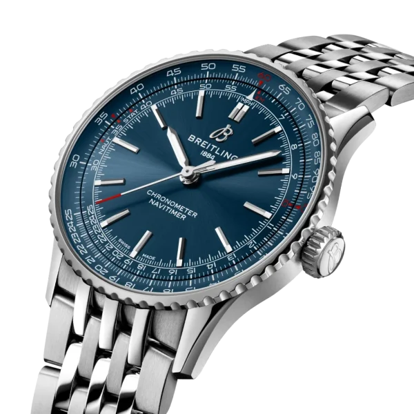 Experience the timeless elegance of the Breitling Navitimer Automatic 41 A17329161C1A1 timepiece. This exquisite watch features a striking blue dial complemented by index hour markers, showcasing a perfect blend of style and functionality. The slide rule adds a touch of sophistication, while the 41mm stainless steel case ensures durability and precision. The bidirectional rotating notched bezel and steel bracelet with deployment buckle enhance the watch’s versatility and comfort. Powered by an automatic chronometer movement, this Breitling timepiece is a true testament to luxury and quality craftsmanship. Elevate your style with the Breitling Navitimer Automatic 41 A17329161C1A1.