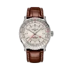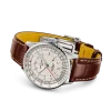 Experience ultimate precision and sophistication with the Breitling Navitimer Automatic GMT 41 A32310211G1P1. This timepiece features a sleek silver dial complemented by index hour markers and a convenient date display. Perfect for jet-setters, it also boasts a GMT second time zone function and a slide rule for quick calculations on the go. The 41mm stainless steel case is accented by a bidirectional rotating notched bezel, adding a touch of versatility to this luxury watch. Paired with a brown leather strap and folding clasp, this automatic chronometer is both stylish and functional, making it the perfect companion for any occasion.
