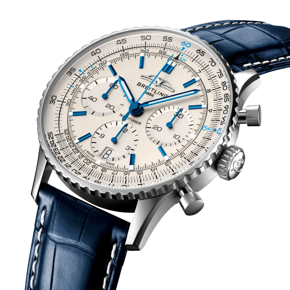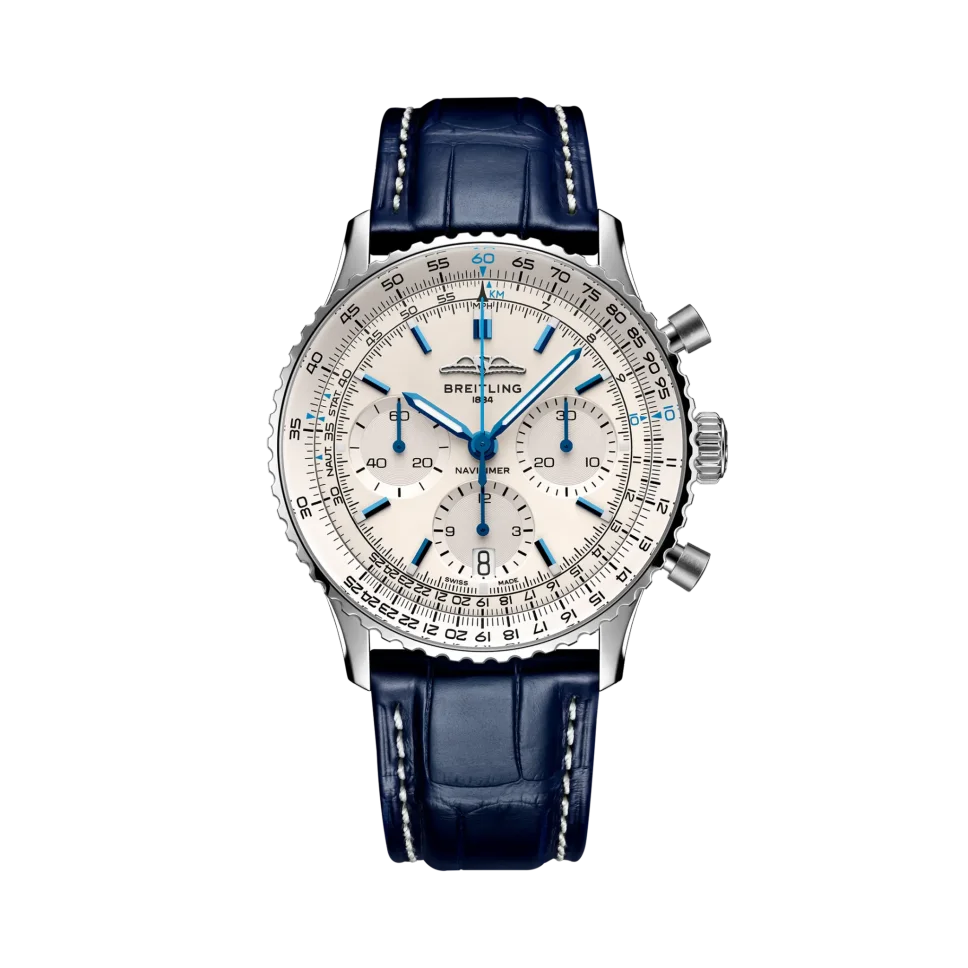 Breitling Navitimer B01 Chronograph 41 Silver Dial Blue Strap AB0139A71G1P1