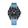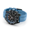 Black breitlight case with a blue rubber strap. Bi-directional rotating black bezel. Black dial with silver-tone hands and index-Arabic numeral hour markers. Minute markers around the outer rim. Dial Type: Analog. Luminescent hands and markers. Date display between 4 and 5 o’clock position. Chronograph – three sub-dials displaying: 60 second, 30 minute and 1/10th of a second. Breitling Calibre 83 quartz movement. Scratch resistant sapphire crystal. Screw down crown. Solid case back. Round case shape, case size: 38 mm, case thickness: 12.1 mm. Band width: 18 mm. Tang clasp. Water resistant at 100 meters / 330 feet. Functions: chronograph, date, hour, minute, second. Endurance Series. Sport watch style. Watch label: Swiss Made. Breitling Endurance Chronograph Quartz Black Dial Unisex Watch X83310281B1S1.