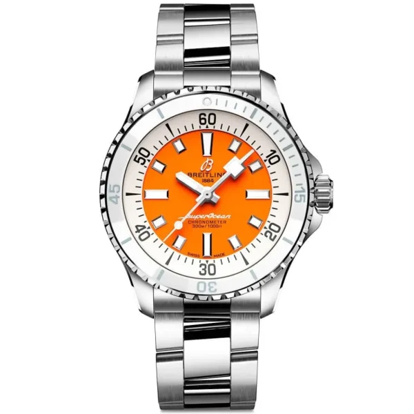 Breitling Superocean 36mm Orange Dial Ladies Automatic Bracelet Watch A17377211O1A1