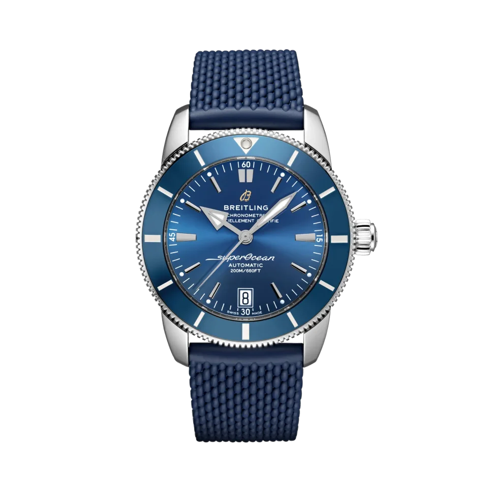 The Breitling Superocean Heritage II B20 Automatic Blue 42mm Men’s Watch AB2010161C1S1 offers high-quality features for a functional and stylish timepiece. Its polished stainless steel case and blue Aero Classic rubber strap provide durability and comfort. The gun blue dial features luminescent details and a date display at 6 o’clock, all protected by a cambered scratch-resistant sapphire crystal. Powered by the Breitling Caliber B20 self-winding automatic COSC Chronometer certified movement, this watch boasts a 70 hour power reserve and is water resistant up to 200 meters. With its sleek design and Swiss made craftsmanship, this diving watch is perfect for any adventure.