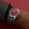 - Striking red dial featuring the colours and emblem of the Chevrolet from which it draws its inspiration
