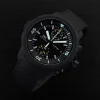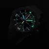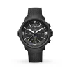 Showcased in a 45mm stainless steel case, this timepiece boasts a sophisticated black dial with chronograph functionality, two sub-dials, a Flyback function, small hacking seconds and a date display at 3 o’clock.