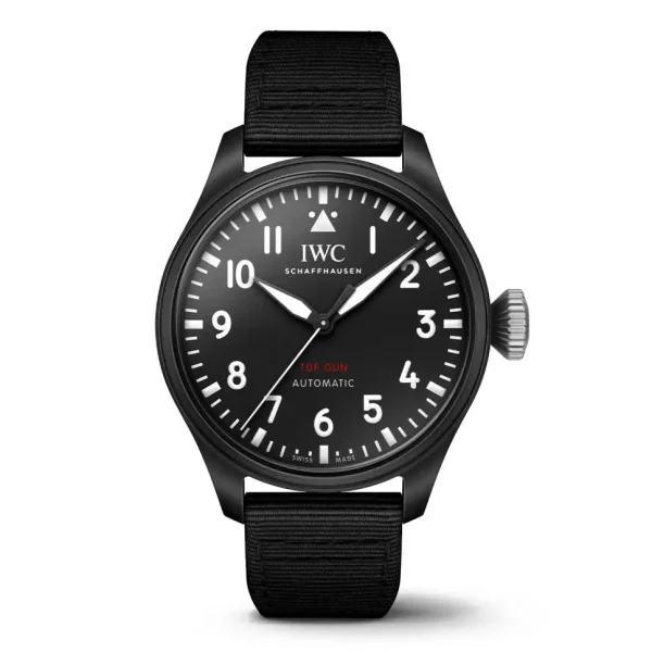 For the first time, this Big Pilot’s Watch is presented in a 43mm case, crafted from black zirconium oxide ceramic for incredible scratch-resistance and durability. The case features an oversized conical crown, reminiscent of an historic observation watch from the 1940s, and fastens securely with a black textile strap.