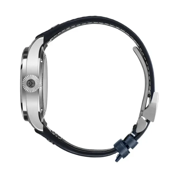 • Presented in a 43 mm stainless steel case and secured by a blue leather strap with quick release technology