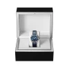 The flawless midnight blue dial plays host to slightly recessed inner circle, three slender hands and a rapid-advance date movement. This handsome watch is set within a reliable 36mm stainless steel case and fastens with a classic deep blue, Santoni alligator leather strap.