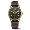 Featuring a distinct green dial equipped with a date display window at 3 o’clock and luminescent hands and Arabic numerals for optimal visibility, this Pilot timepiece is housed by a robust 39mm Bronze case and is protected by sapphire crystal glass, secured against displacement by drop in air pressure. This expertly crafted design also has a soft-iron inner case for protection against magnetic fields.