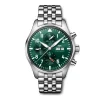 Styled to resemble a cockpit instrument, the racing green dial is home to a day and date display, and advanced chronograph functions providing precision to the nearest hour, minute, and second.