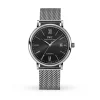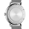 A rounded, 40mm stainless steel case and handsome stainless steel Milanaise bracelet complete the look.