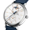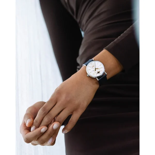 Stainless steel case, Automatic, self-winding, Diameter 41.0 mm, Blue calfskin strap, Strap width 20.0 mm.