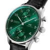 Showcasing a striking green dial, this timepiece features small hacking seconds and innovative chronograph function with minutes and seconds.