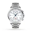The 44.6mm stainless steel case houses a clean white Gris argent dial with luminescence for optimum visibility while at sea. The dial is further stylised by a date display at 6 o’clock, hour and minute counters combined in a totalizer at 12 o’clock, and chronograph functions with precision to the nearest hour, minute, and second.