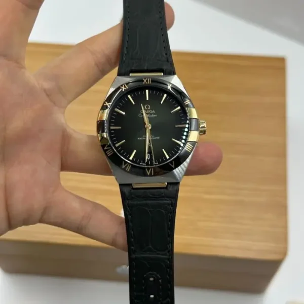 Unworn Omega Constellation CO?AXIAL MASTER CHRONOMETER 131.23.41.21.10.001. 41 mm, Green dial, Steel ? yellow gold case, Black ceramic bezel, 8900 calibre, Automatic Movement, 60 hours power reserve, Leather strap Foldover clasp. Water resistant to 50 m.