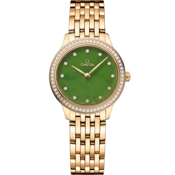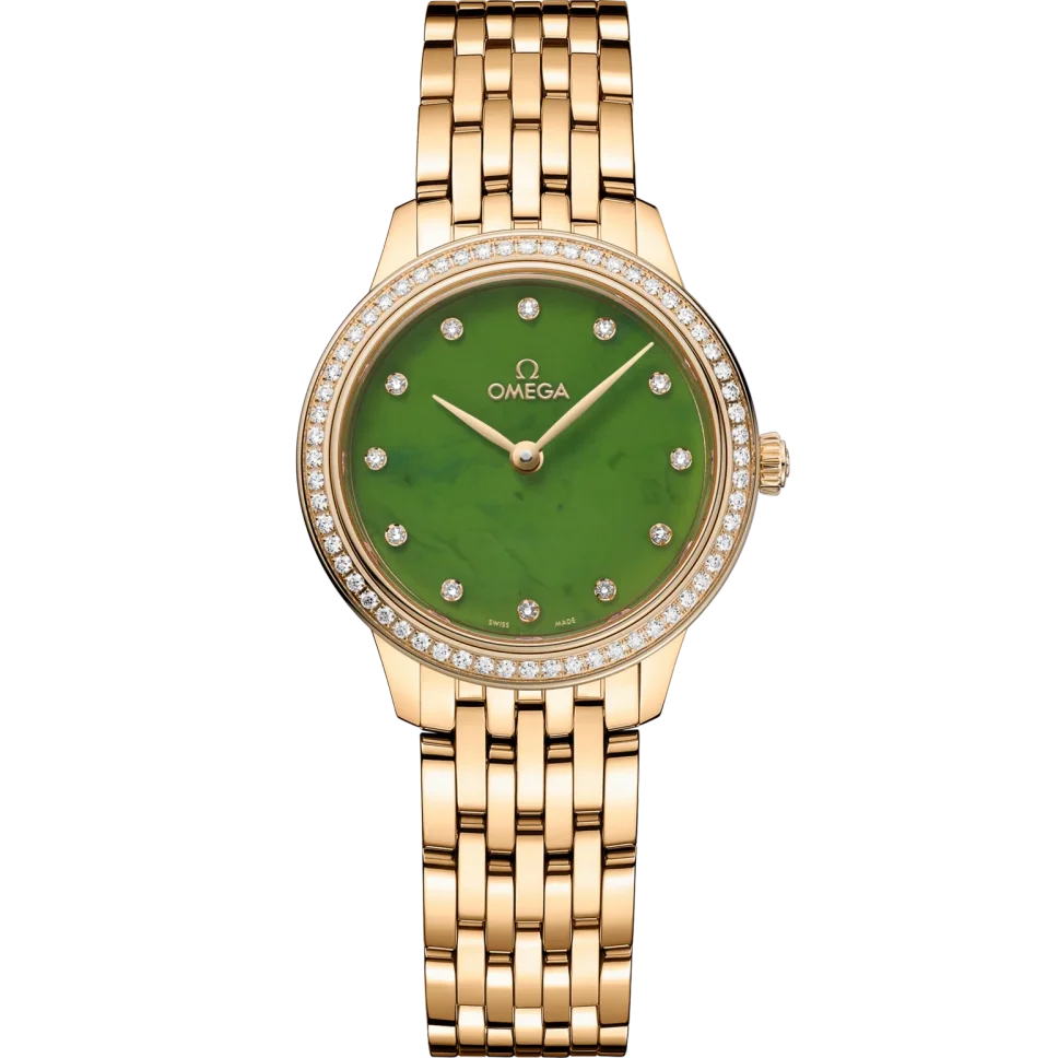 Omega De Ville Prestige 27.5mm Green jade Dial with Diamonds 18k Yellow Gold Strap 434.55.28.60.99.001