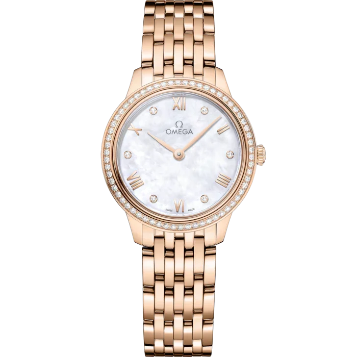 Omega De Ville Prestige 27.5mm White Dial with Diamonds Sedna 18k Rose Gold Bracelet 434.55.28.60.55.001