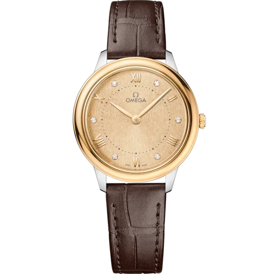 Omega De Ville Prestige 30 mm Yellow Dial with Diamonds Stainless Steel and 18k Yellow Gold Strap 434.23.30.60.58.001
