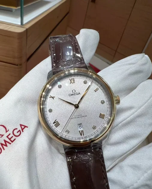 Omega De Ville Prestige 40mm Silver Dial with Diamonds Stainless Steel and 18k Yellow Gold Strap 434.23.40.20.52.001