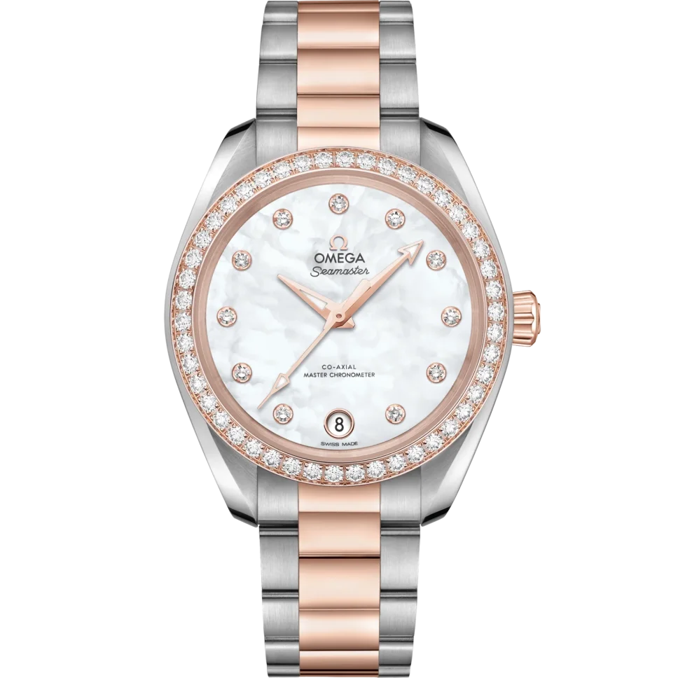 Omega Seamaster Aqua Terra 150M 34 mm White Dial with Diamonds Stainless Steel and Sedna? 18k Rose Gold Bracelet 220.25.34.20.55.001