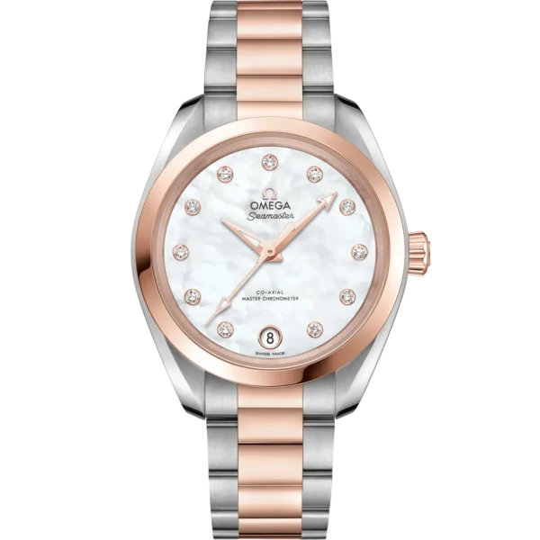 Omega Seamaster Aqua Terra 150M 34mm White Dial with Diamonds Stainless Steel and Sedna? 18k Rose Gold Bracelet 220.20.34.20.55.001